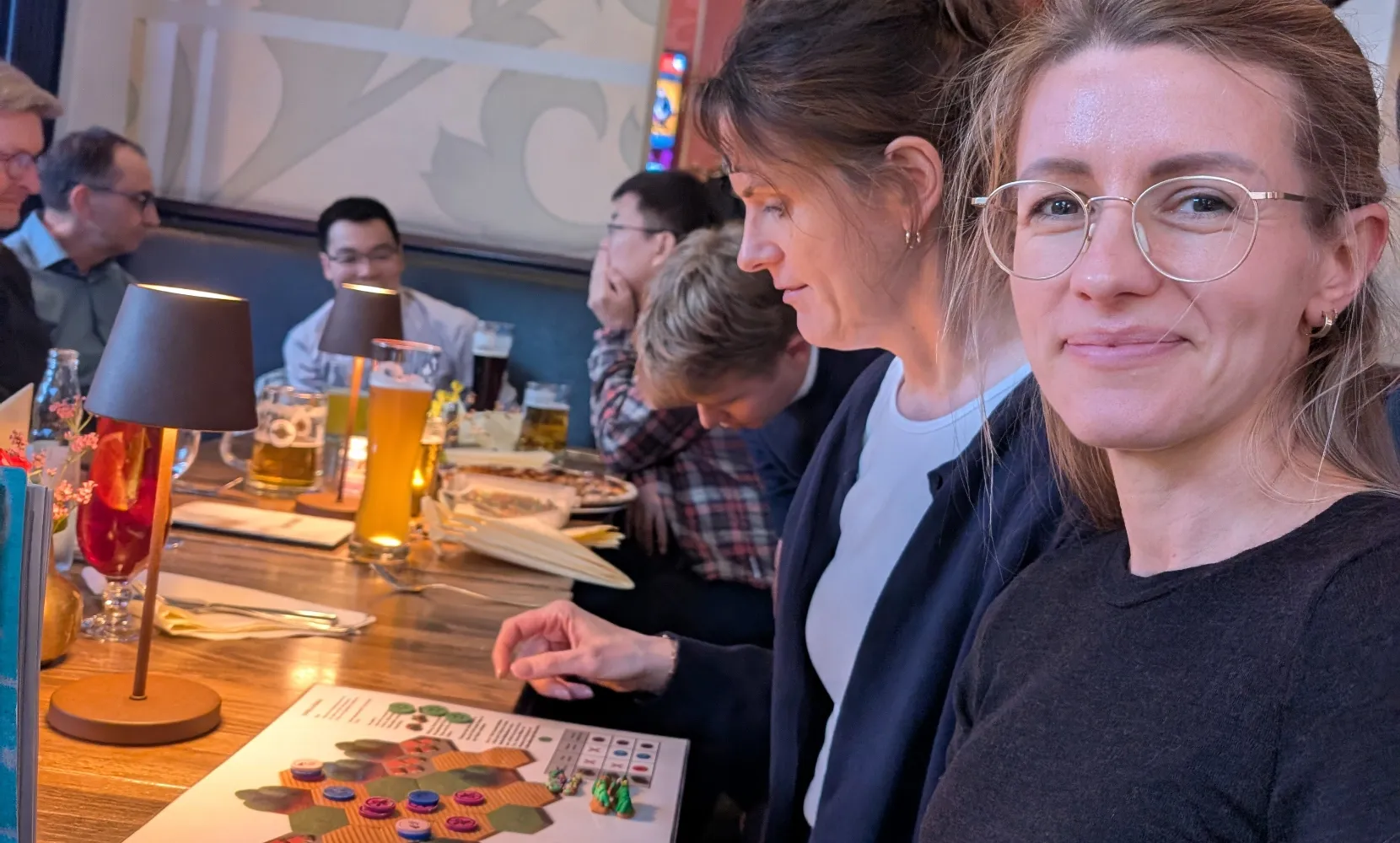 The highlight of the dinner was the DAKIS board game on agri-environmental measures and biotope networks, which had already been presented for the first time a few days earlier at a family event at Futurium Berlin (see Futurium press article) and visibly generated enthusiasm among our team. The newly developed game conveys the basic idea of DAKIS: to make agriculture more diversified, small-scale and networked through targeted measures in order to promote ecosystem services and biodiversity, taking economic aspects into account.